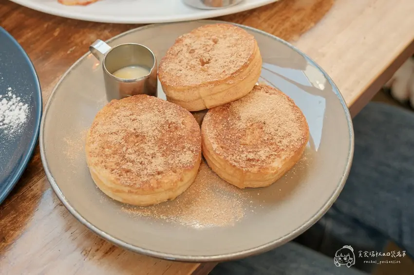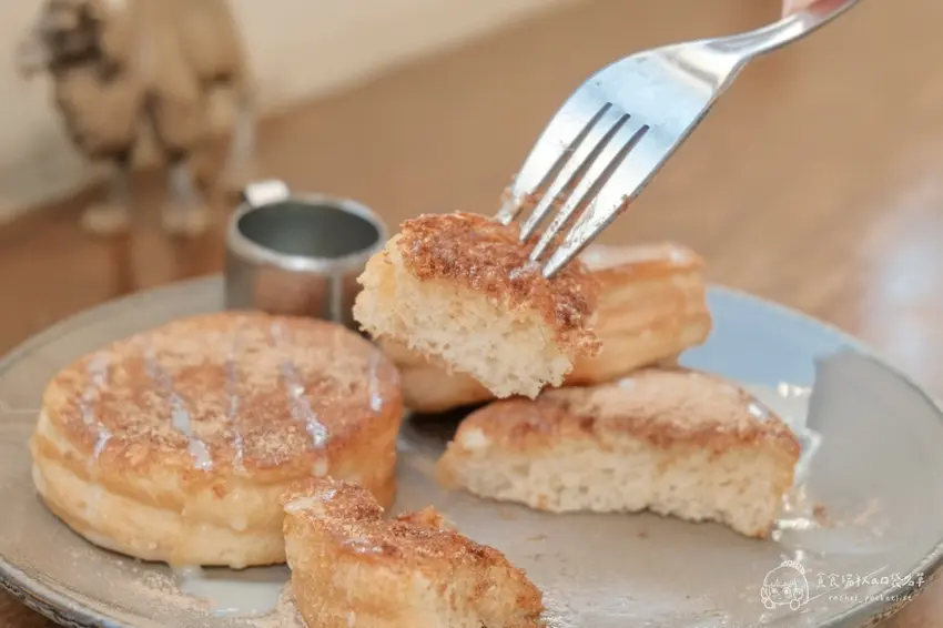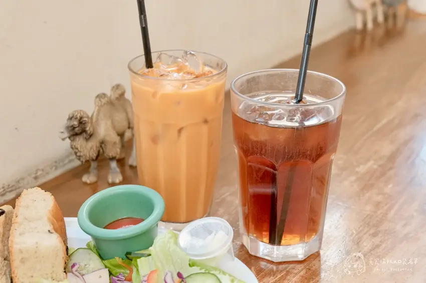 甜食愛好者必點售價 85 元的奶油煎肉桂自家製小圓吐司。將自製吐司煎至微酥,撒上肉桂粉再淋上煉乳,溫潤甜香且不膩口,作為餐後甜點或下午茶都相當合適。飲品部分,套餐皆附有基本茶飲,也可加價升級。泰式奶茶茶香濃郁,帶點煉乳甜味,搭配鹹食特別解膩;冰紅茶則是清爽順口,甜度適中,是相當穩健的飲品選擇。