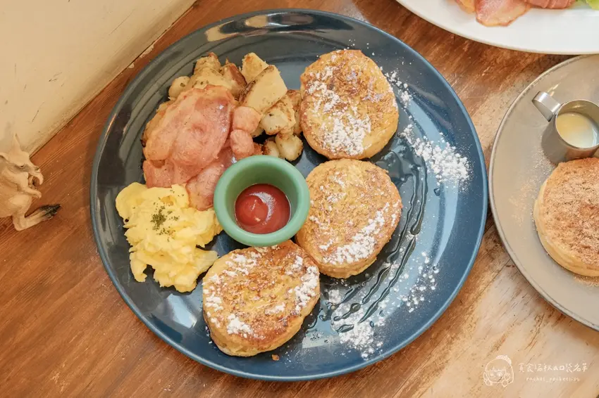 喜愛經典早午餐的食客,首推售價 199 元的貝根先生。自家製的小圓吐司煎成金黃微酥的法式吐司,外酥內軟口感極佳。搭配滑順香濃的法式炒蛋、香料炒薯塊與真實肉培根,鹹香扎實且份量十足,是一盤從頭到尾都沒有冷場的滿足系餐點。