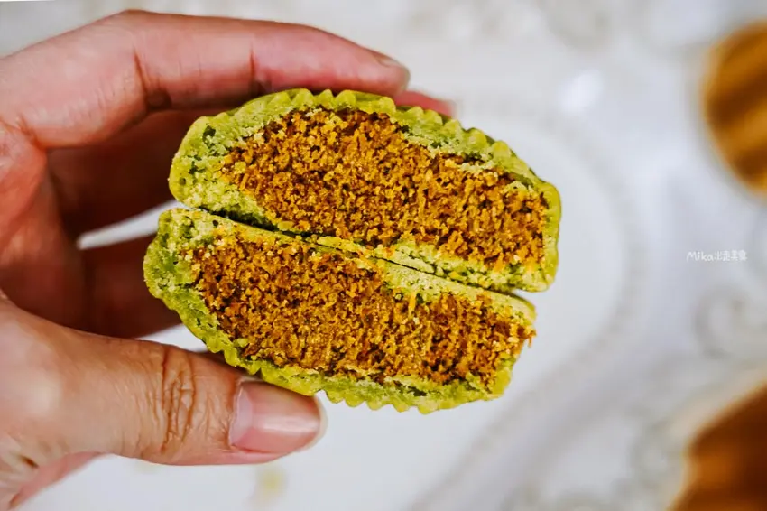 內餡完美還原杜拜巧克力的精髓,採用 100 % 開心果醬搭配白巧克力與發酵奶油。經過細細研磨的開心果內餡風味極度醇厚,加入酥皮絲後更增添了明顯的酥脆口感。整體甜度偏高,堅果香氣非常強烈,是一款充滿異國風情、適合甜食愛好者的特色茶點。