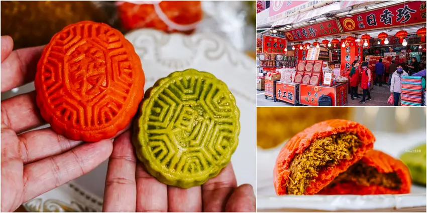 位於雲林北港老街、朝天宮周邊的日香珍囍餅,是一間百年老字號餅舖。近期將爆紅的杜拜巧克力與傳統紅龜粿結合,推出期間限定的開心酥福餅。