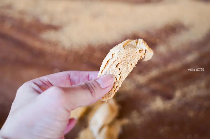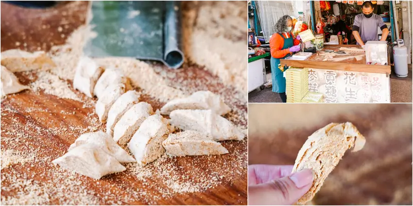 花生酥的用料極度純粹,製作過程中僅使用純麥芽與花生粉,完全不額外添加砂糖。麥芽的自然微甜完美襯托出花生的濃郁香氣,吃起來毫無負擔感與甜膩感。透過層層桿壓的技法,創造出外皮酥脆、內裡微軟的獨特咬感,將簡單的食材發揮到極致。