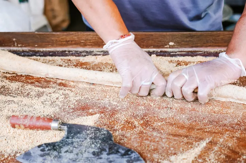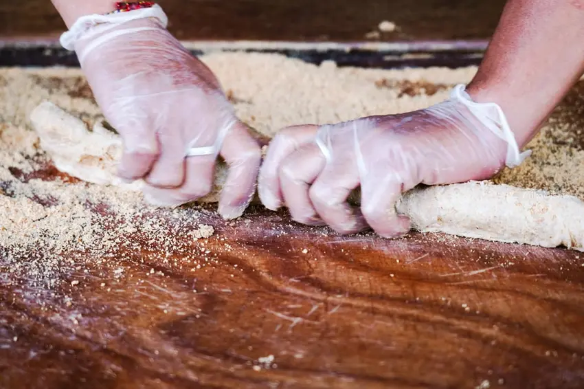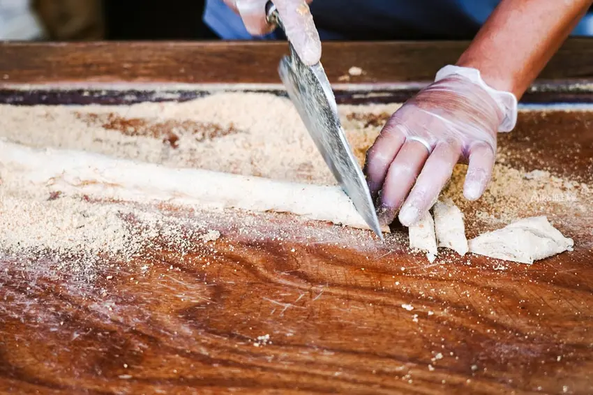 攤位精準座落於北港老街上的森興燈籠店門前。只要循著空氣中飄散的花生清香,就能輕易找到老闆忙碌的身影。看著老闆在攤位上雙手不停地來回翻折與桿壓,將傳統手藝毫無保留地展現在食客眼前。這份充滿古早味的手作點心,成為老街上一道充滿生命力的美食風景。