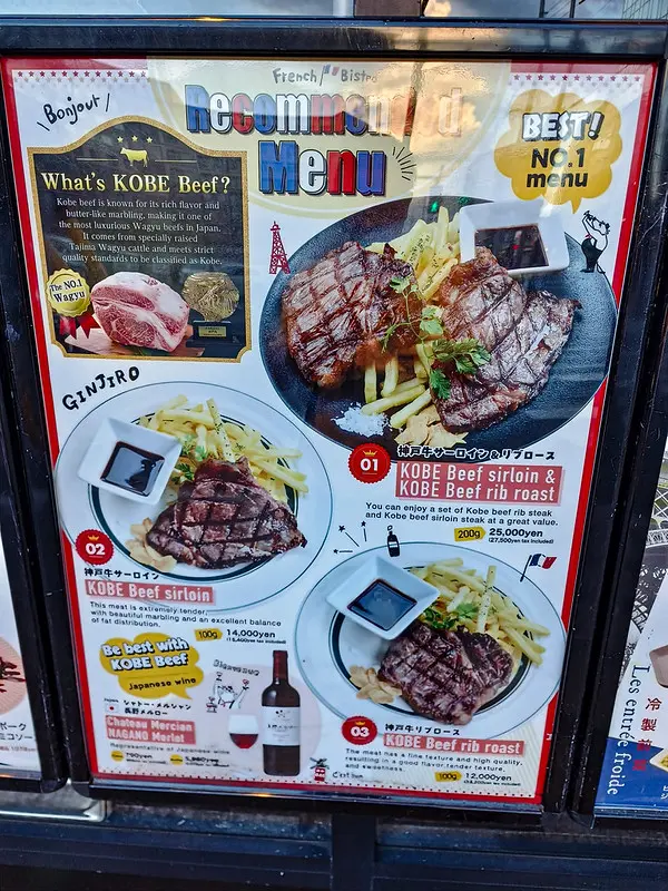 招牌近江牛牛排售價 1980 日圓,有別於強調高溫直火與原味的美式牛排,這裡走的是傳統法式路徑。肉品上桌時熟度控制得恰到好處,切面呈現極具食慾的粉紅色。底層搭配質地醇厚的肉汁醬,以肉骨與蔬菜長時間熬煮而成,展現法式料理以醬汁為靈魂的核心精神。
