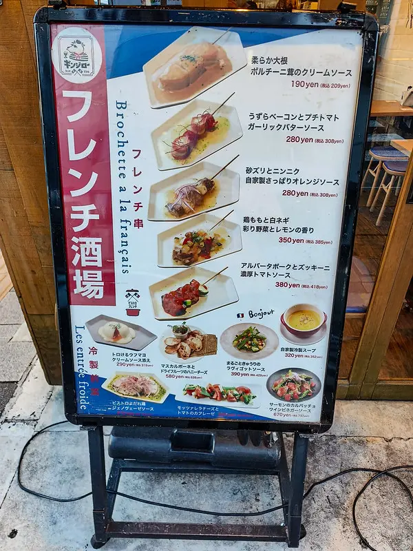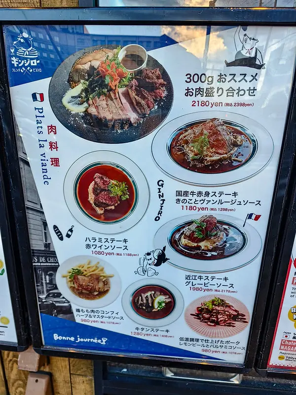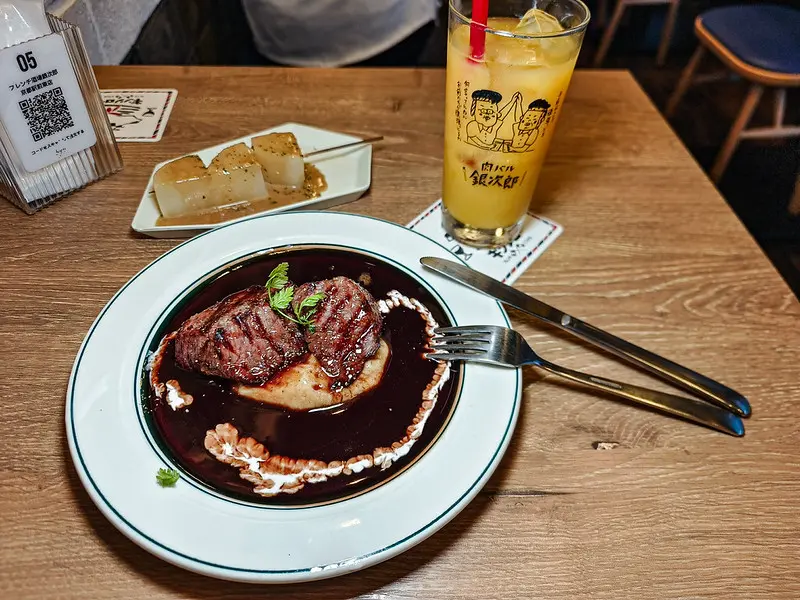 距離京都車站步行約 5 分鐘,位在七条通巷弄內的法式酒場銀次郎,是一間充滿在地生活感的平價餐館。店內空間狹長且座位緊湊,二樓亦設有客席。沒有傳統居酒屋的吵鬧,反而帶著法式小館的靜謐。這裡對外籍旅客相當友善,提供多語言菜單。承襲老字號精肉店的深厚底蘊,將頂級肉品結合法式醬汁,並把日式關東煮披上法式外衣,為整天行程奔波後的旅人,提供一處能安放食慾、純粹享受肉食盛宴的踏實空間。