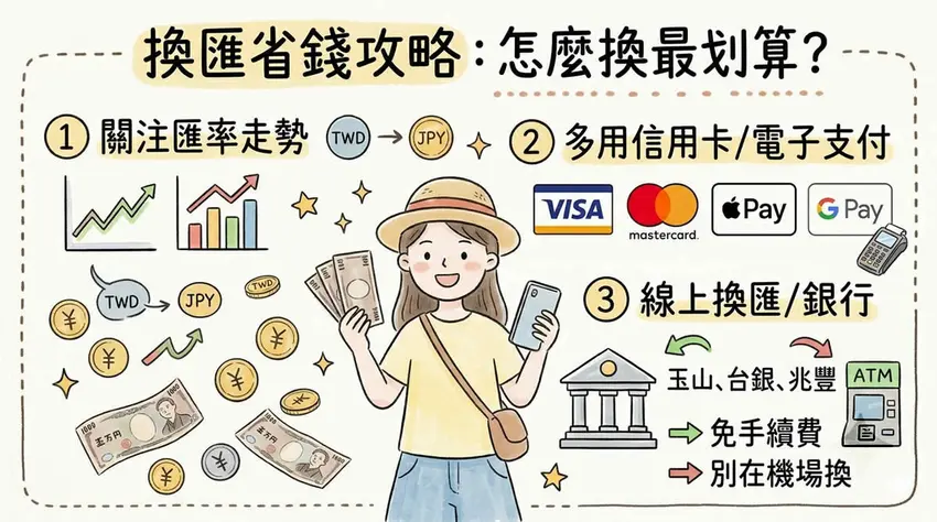 面對匯率持續波動,聰明換匯能省下可觀的餐費與購物開銷。建議平時多關注匯率走勢,採分批分量買入以有效分攤成本。使用銀行線上應用程式換匯通常享有匯率優惠且免收手續費,可再至機場或指定分行提領現鈔,並應盡量避開匯率最差的機場或飯店現場櫃檯。此外,沖繩多數商場皆支援各式行動支付,推薦搭配海外回饋高於 1.5% 的信用卡,結帳更加快速便利。