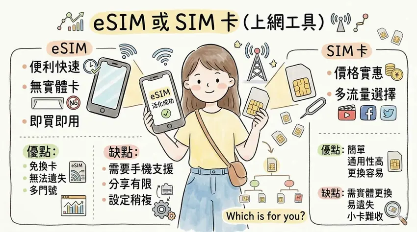 網路通訊方面,新型號手機可選擇免換卡的虛擬網卡,掃描行動條碼即可啟用,無須擔心遺失實體卡片;實體網卡則具備價格親民與隨插即用優勢,但需妥善保管原有的台灣網卡。此外,儘管日本藥妝店林立,仍建議自備腸胃藥、止痛退燒藥、綜合感冒藥及外傷藥膏。若有安排跳島或乘船行程,暈車與暈船藥更是不可或缺,確保突發狀況時能即時緩解不適。
