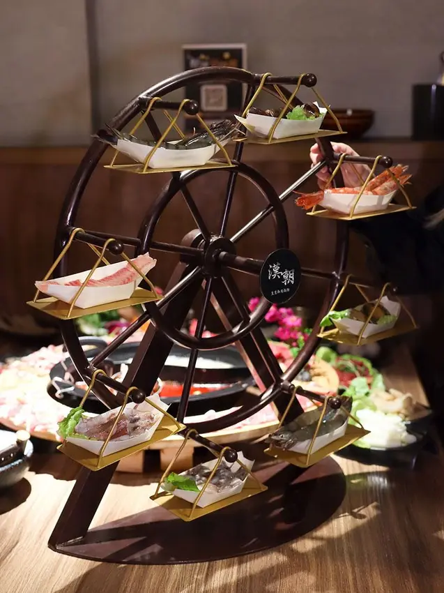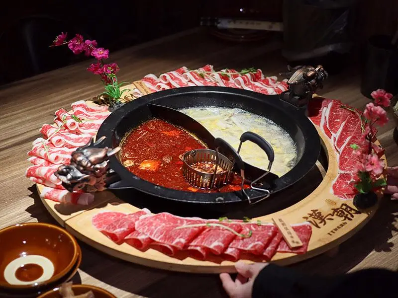 位於新竹縣竹北市的漢朝鍋物,以極具氛圍的中國風裝潢與半開放式包廂聞名。主打視覺震撼的龍頭鴛鴦鍋,搭配頂級牛魔王肉組與浮誇的海鮮摩天輪。