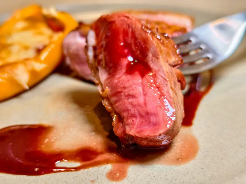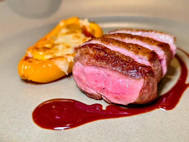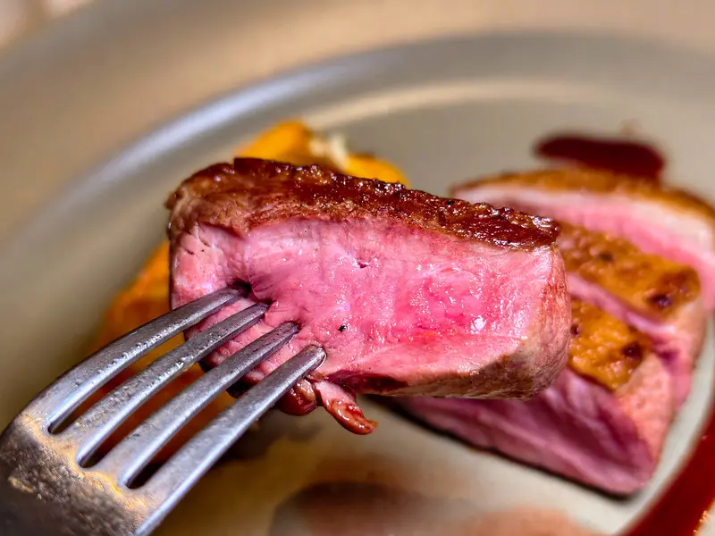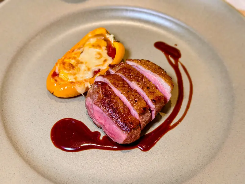 嫩煎鴨胸皮酥脆,紅酒牛頰極軟嫩
