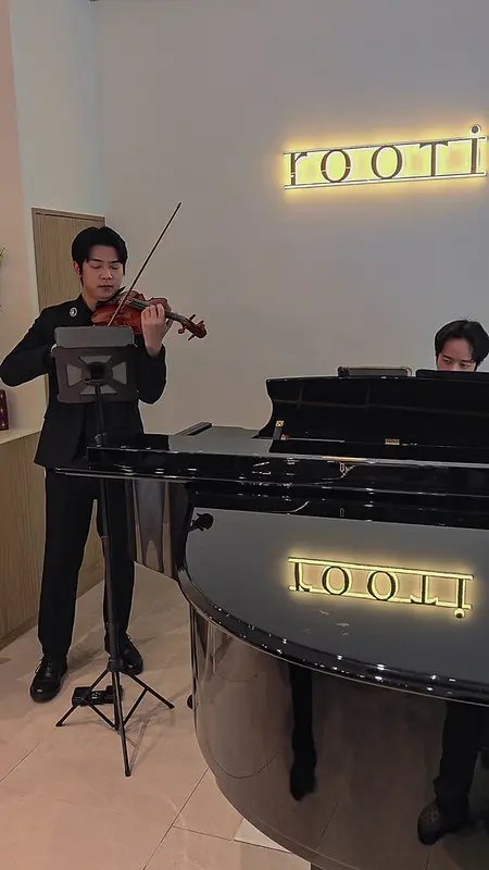 餐廳內最引人入勝的亮點,在於空間裡特別保留了一個專屬音樂演奏的角落。用餐期間常有大小提琴或鋼琴的現場演出。樂器演奏的音量控制得極為宜人,完全不會干擾同桌間的輕聲交談。在舒緩的旋律伴奏下,只需順著提琴的節奏安靜享用佳餚,細細體會屬於巷弄裡的踏實日常,整體氛圍流暢且極度舒適。