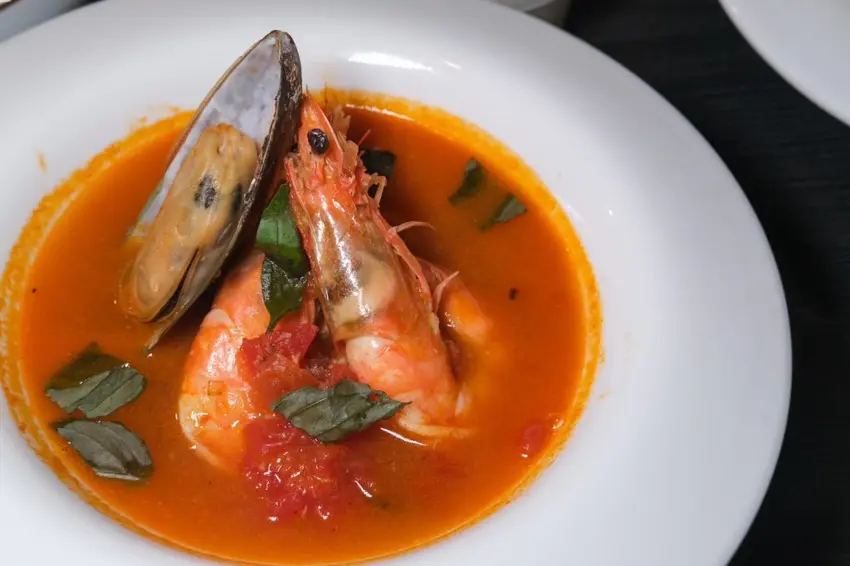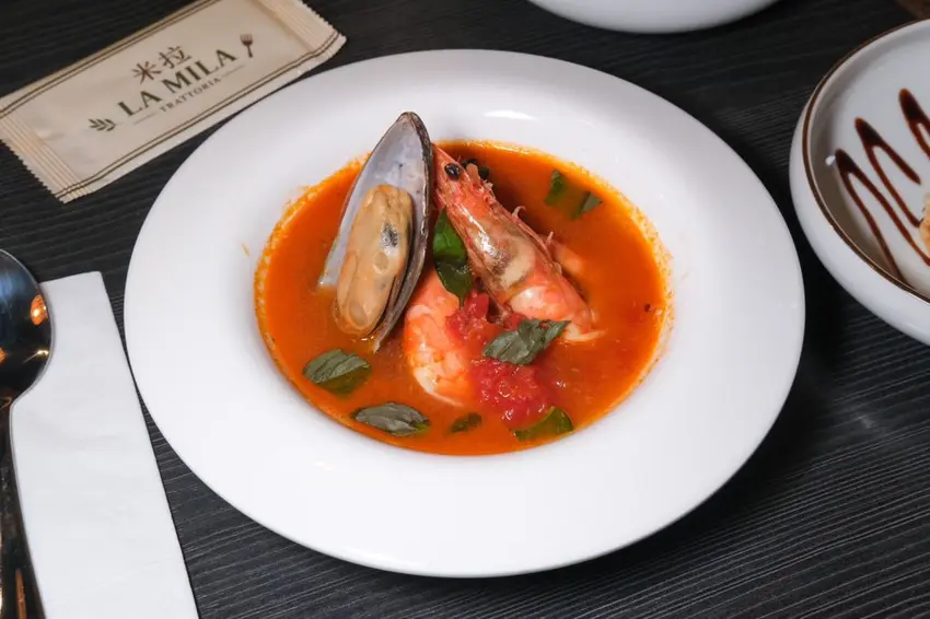 ▼加價229元即可升級豪華的義式單人饗宴套餐 ,湯品可選擇豐富的地中海番茄海鮮湯,可以吃到兩大尾蝦豪華的義式單人饗宴套餐 ,湯品可選擇豐富的番茄海鮮湯,可以吃到兩大尾蝦、扇貝、透抽和蛤蠣,酸酸甜甜很討喜!