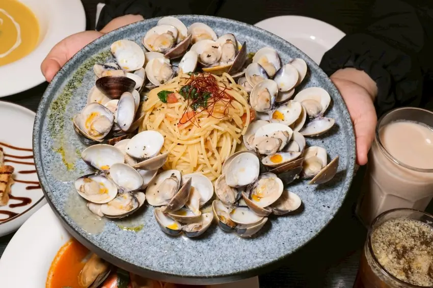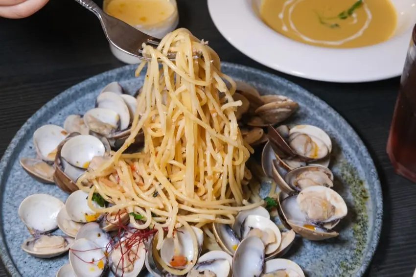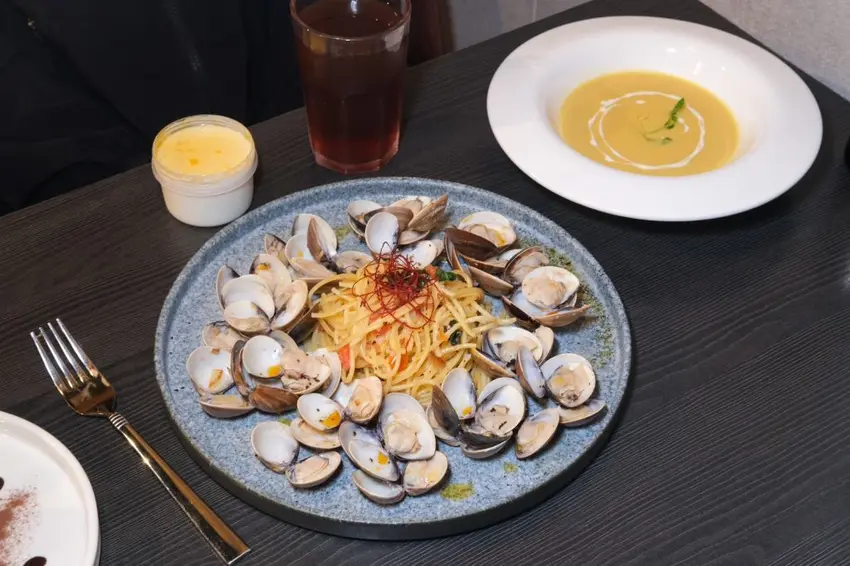 蛤蠣蒜香白酒馬告義大利麵 商業午餐💰350元 (含主廚湯品+飲料+甜點)