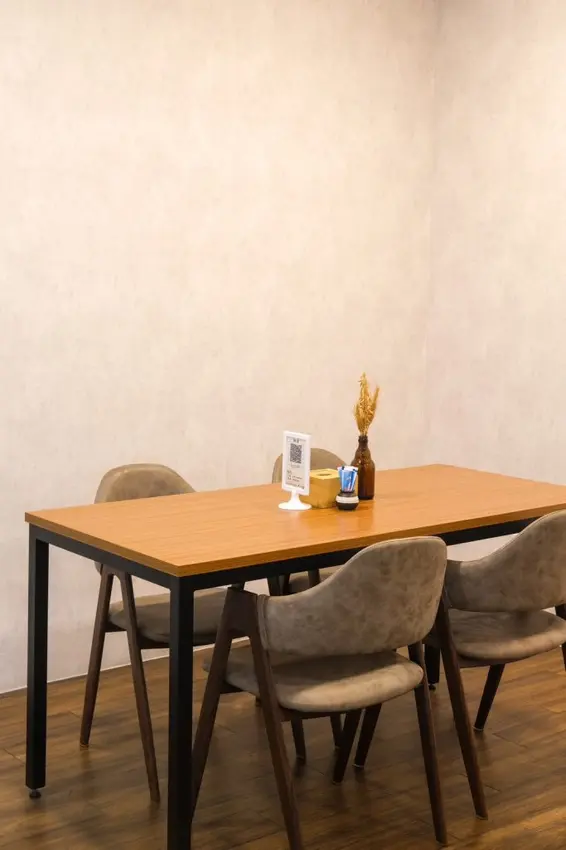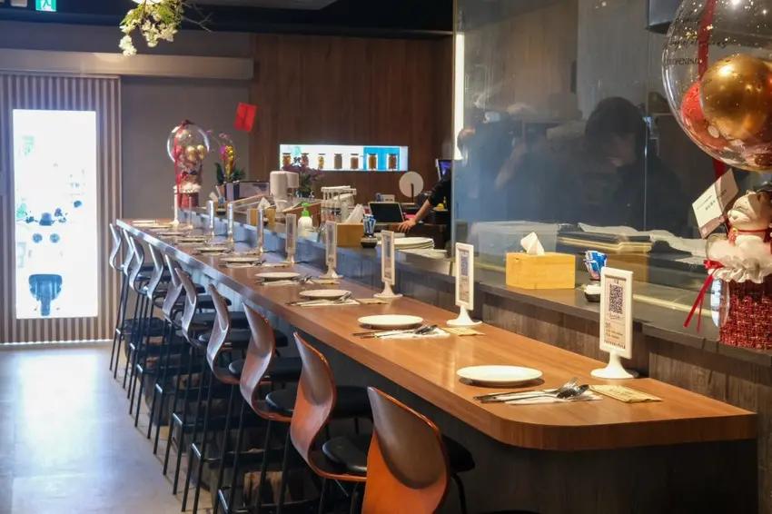 ▼【米拉義式餐廳】用餐環境以木質調為主,帶有滿滿的典雅氛圍感,一走進去可以看到狹長型的吧檯,後面則有兩個四人餐桌,樓上則也是適合多人的座位區,還有包廂可以做會議包場或是活動包場。