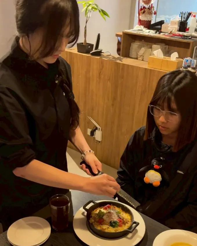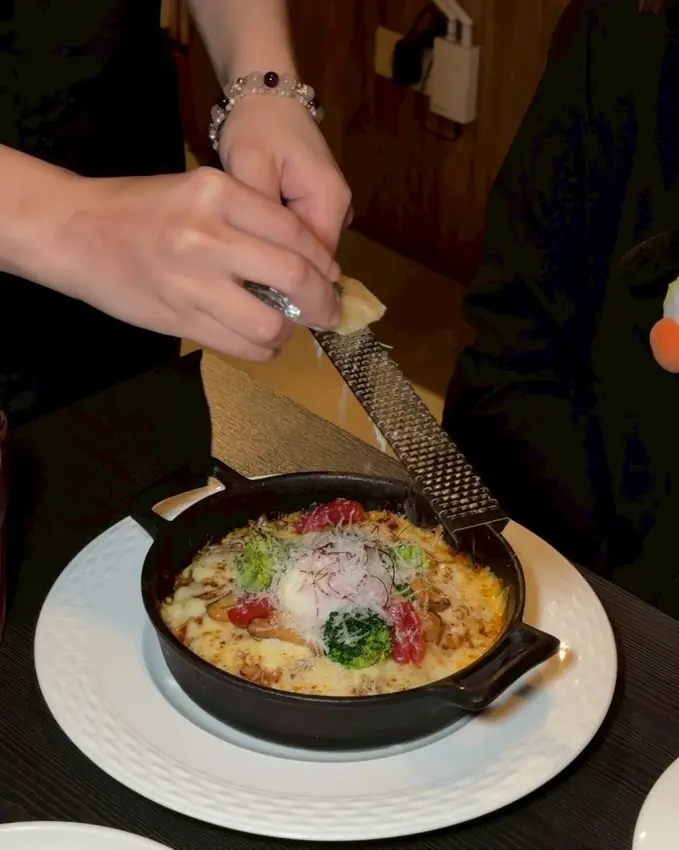 ▼起司控會愛的日出馬告肉醬起司焗烤飯,上桌前已經加了滿滿起司,如果不夠還能跟服務人員要求再加,會直接在桌邊現刨帕馬森起司不收費。