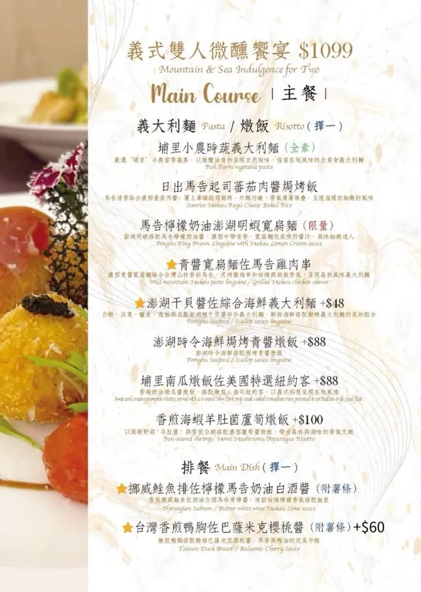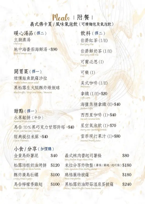 米拉義式餐廳 菜單
