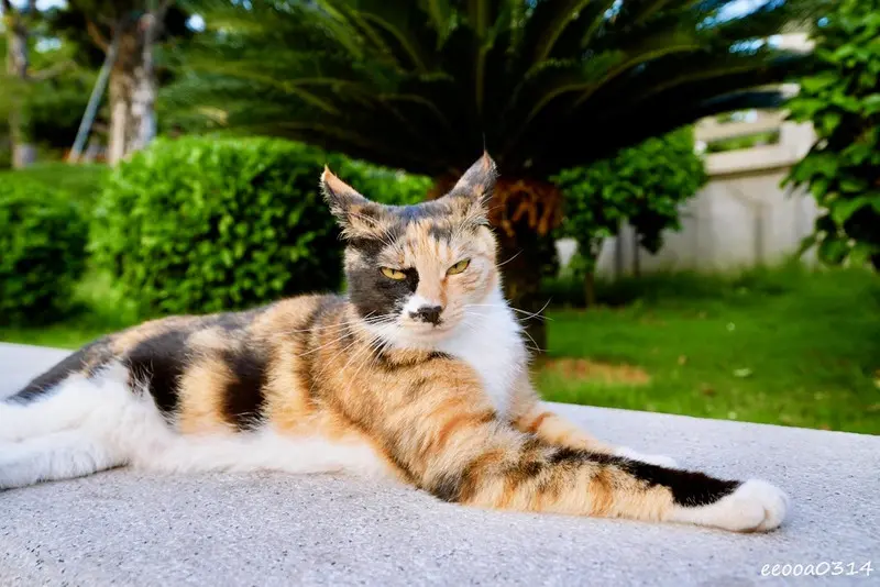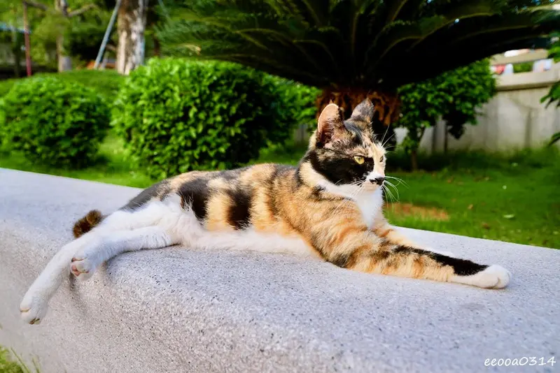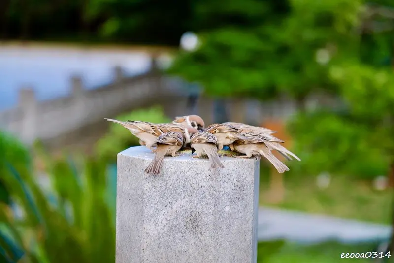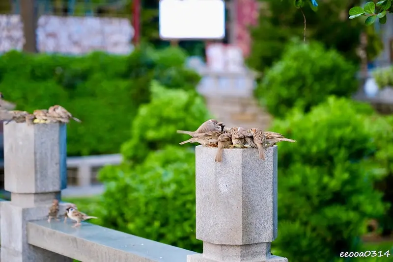 另外,還有成群的麻雀吃著飼料以及可愛貓咪在悠閒地在一旁休息,那副愜意的模樣真的很療癒!