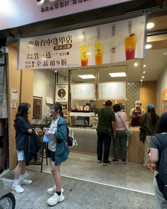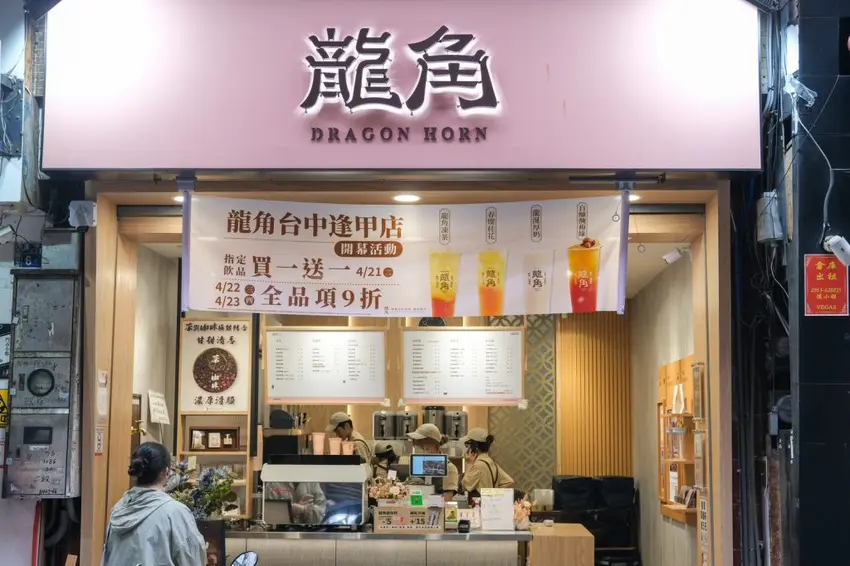 ▼來自彰化鹿港的人氣手搖飲品牌【龍角 Dragon Horn】,目前於全台已有十餘家間門市,包括雙北、桃園、宜蘭、台南皆有,台中首家門市插旗於逢甲商圈逢甲路上,鄰近逢甲大學相當熱鬧。