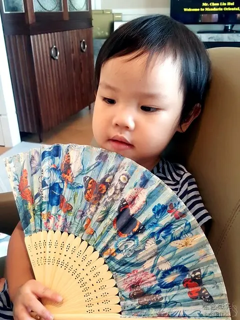 這把折扇也是代表文華東方的精品哦,這把肩子上面有栩栩如生的蝴蝶紛飛於繁花之中,呼應台灣蝴蝶王國的美名,也代表酒店融合了在地文化精神,而扇子標誌更是文華東方酒店品牌文化的一部份。