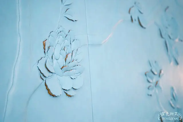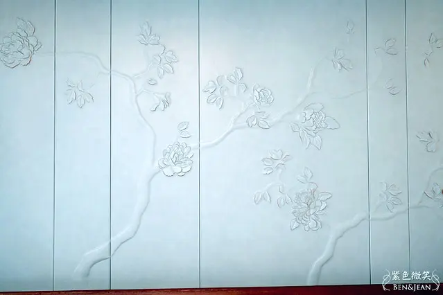 每間房的床頭上方都有這樣的作品,稱它為作品一點都不為過,它可是塊皮雕!有很多花卉的元素,不管是牆上掛的壁點、門牌,甚至連這裏都看的到