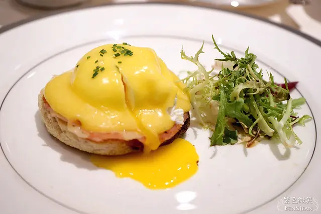 經典火腿班尼迪克蛋~~看看這蛋液流下來的畫面,吐司沾著吃真的很可口!!