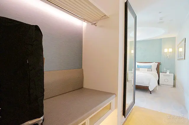 從房廊的房門打開後,右手邊就到了剛剛的一房一廳雙衛的都會套房房間