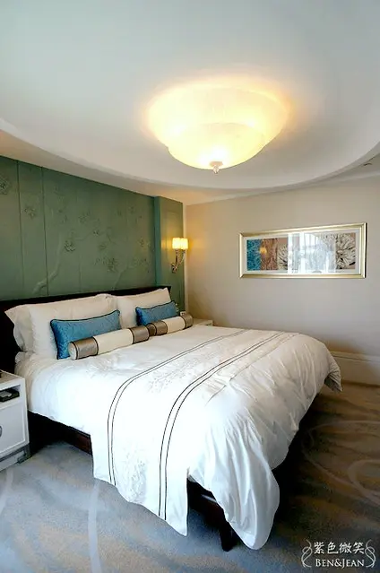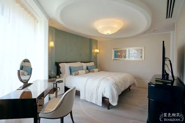 這間因為有客廳的關係,所以房間顯的精緻而典雅,淡藍色的色調,讓房間多了分沉穩的氣息