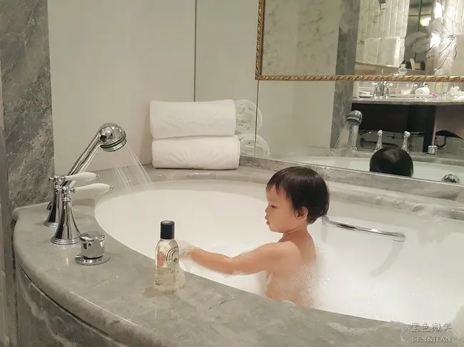 提到酒店的服務,因為兩個浴缸旁準備的4包泡澡湯包已經被兩隻果用完了,我們半夜要泡澡才發現沒有了,沒想到電話一通雖然是半夜十二點,酒店服務人員還是立馬端著盤子送到,而且怕驚擾客人連門鈴都不按,在門前小小的敲門,真種貼心真的難得啊!