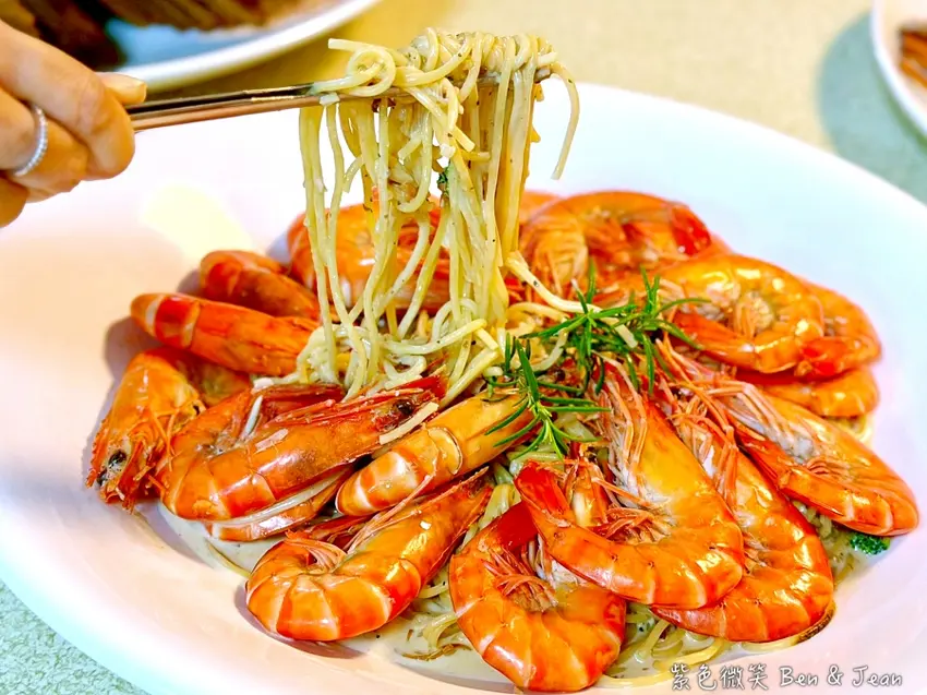 哈哈,很妙的組合!! 雖然不像一般有醬料的義大利麵,但吸飽了白蝦湯汁的麵條,口味的表現也滿不錯的