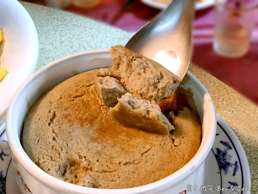 湯匙一挖,熱氣翻騰~~~芋泥口感細緻,微甜的口味,而且是用豬油拌的,除了增添濃郁的香氣,口感也很滑順、不乾澀