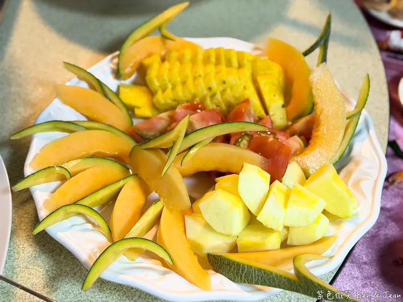 我們因為是加價訂餐,所以這次總共14 道菜加水果,讓我們一伙有老有少的14人吃的心滿意足,而且份量十足,有些還打包呢