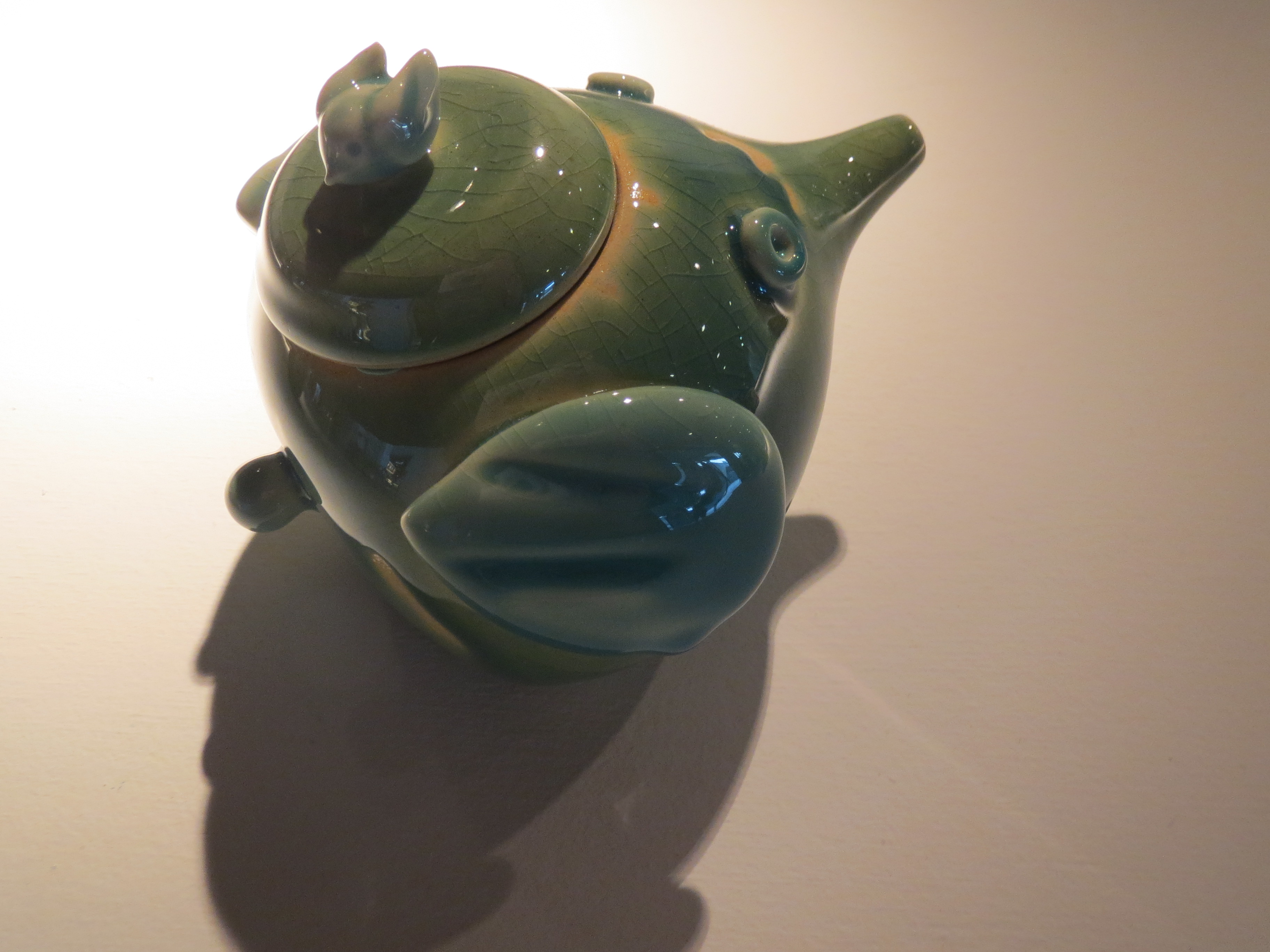 雖然我有拍到的茶壺只是一部分,但要我在這麼多種茶壺裡說出我更偏愛哪一個,我也沒辦法答得毫不猶豫。真的要說的話,就是陳家禾的「藏華」,它肉眼可以辨識出來的顏色就有褐色、紅色和綠色等等,還有更多不知道該定義為什麼顏色的色調。我就是喜歡這種多層次色彩組合起來的效果。