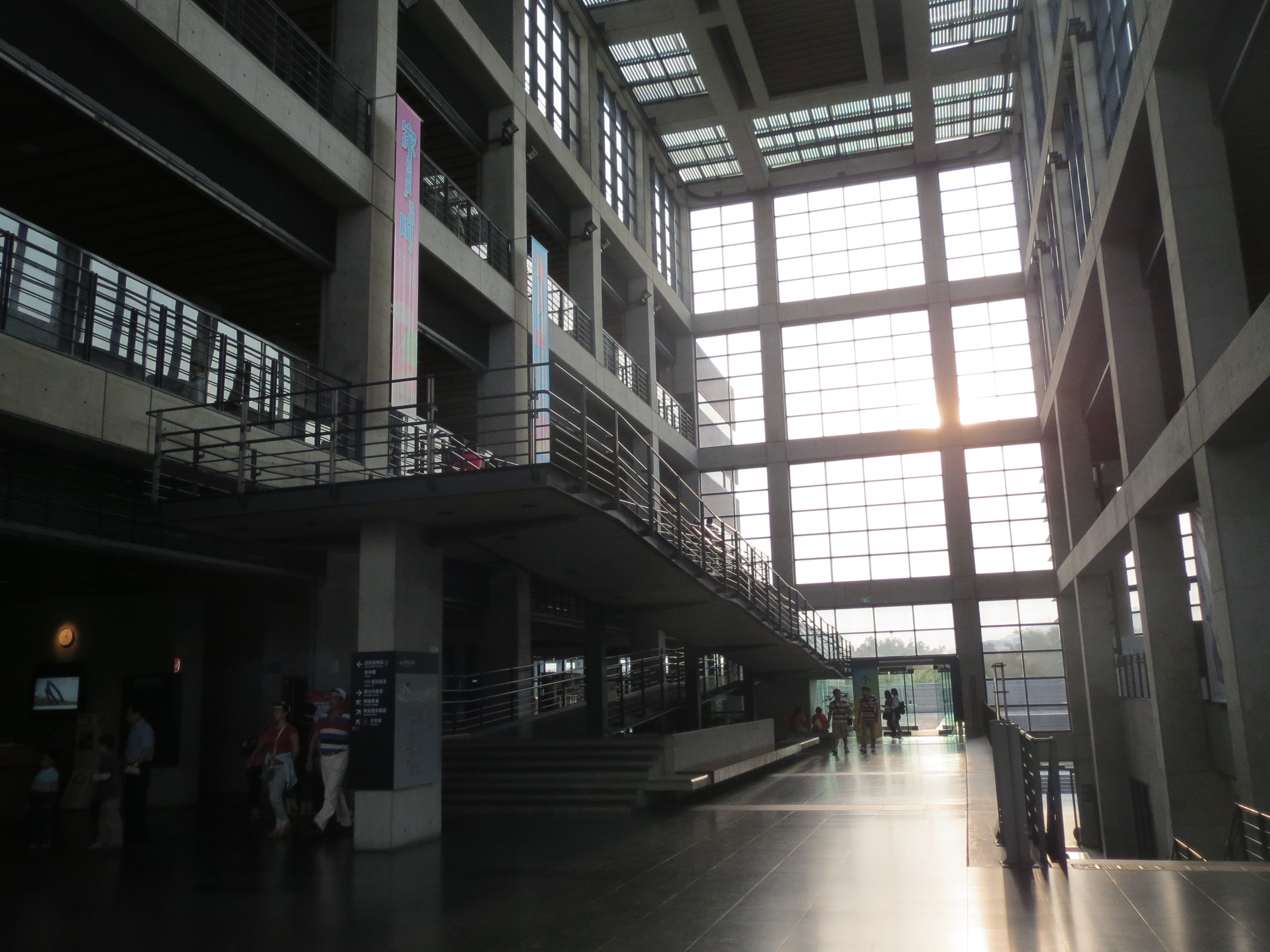 有別於某些我曾經造訪過的博物館,裡面的空間還挺開放通風的。關於這一點,我認為官網上對其建築特色的描寫非常貼切,那就是「以清水模和鋼骨呈現的灰色系外觀,空間挑高與顏色素淨的設計,以及大面積的玻璃帷幕,讓外頭灑落進來的自然光,在寬闊的空間中展現光線透射的各種效果」。在這樣的環境拍照,大概用不上什麼閃光燈,而且也有規定不能使用閃光燈。