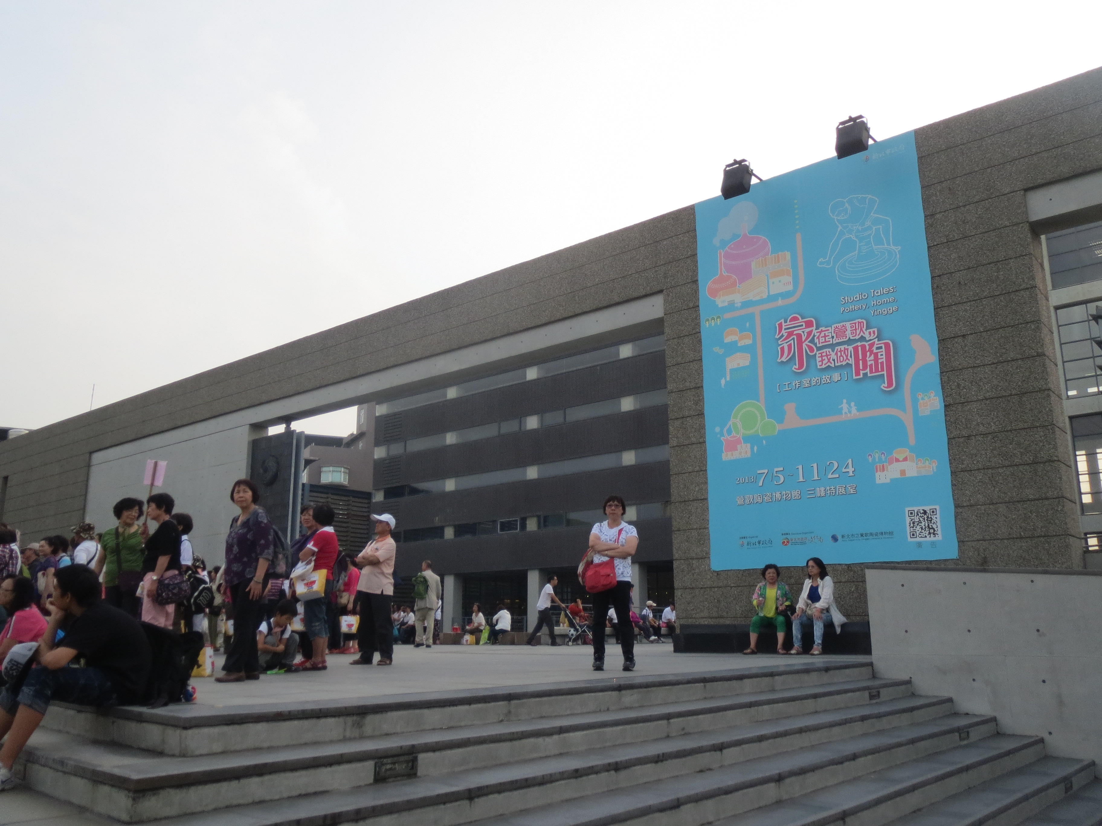 在沿路指標的指引之下,即使是已經有十幾年沒到過鶯歌的我,也順利地找到了很大一棟的陶博館建築。遠遠地就可以看到有一群觀光客聚集在入口前面,目標物可以說是非常的明顯。不過也讓我覺得不管等了多久,都無法拍到淨空照