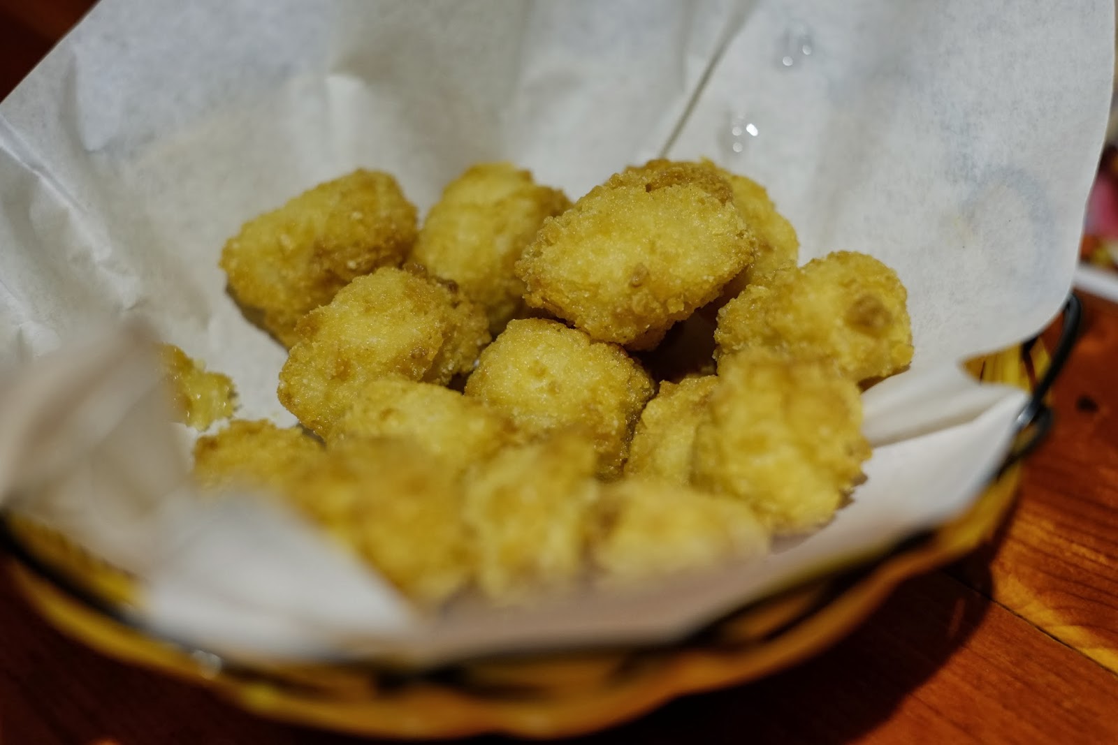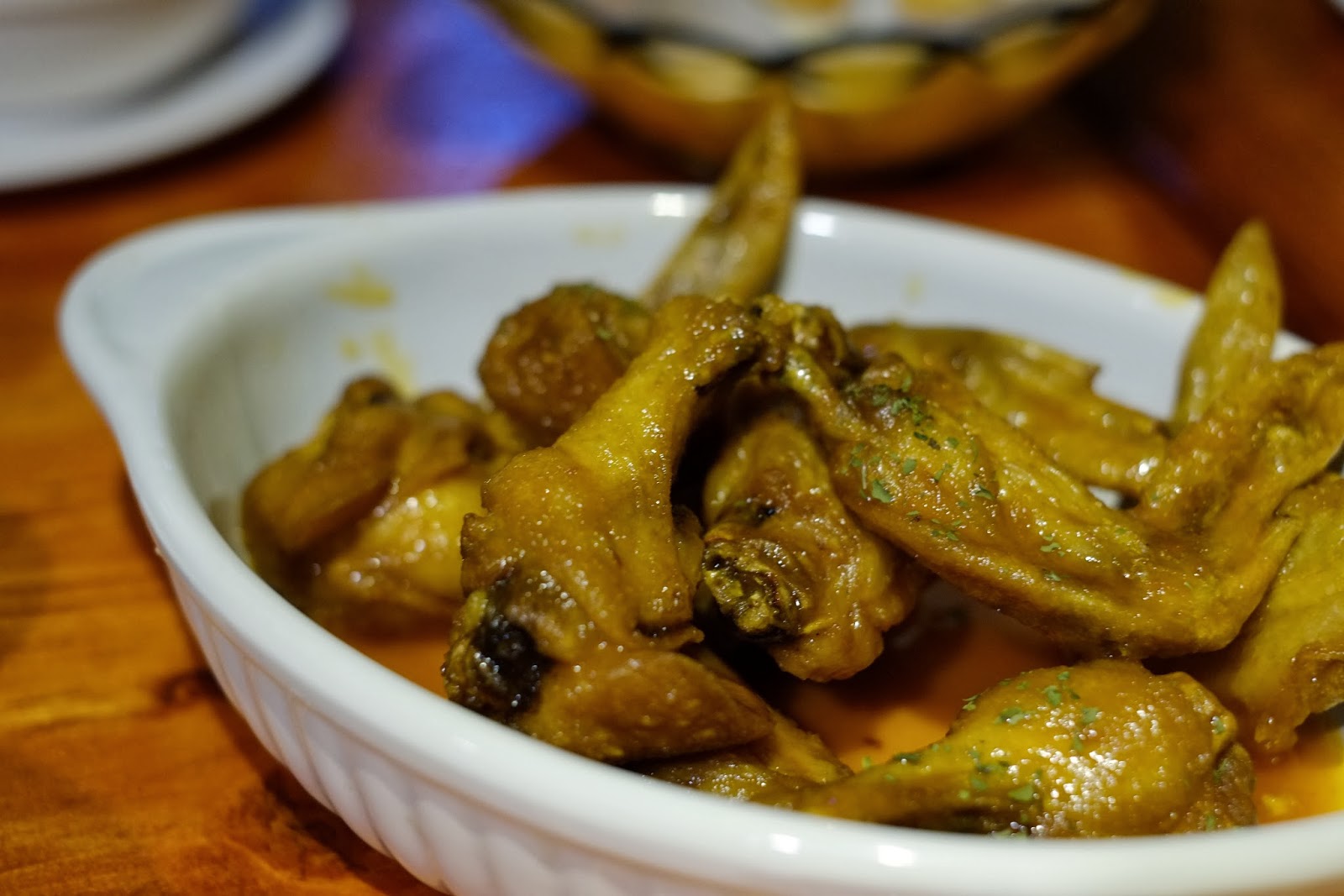 加點魷魚花與辣雞翅,聊天當然要有點開胃下酒的東西(大誤),魷魚花份量算多,炸起來酥脆帶有些嚼勁,好吃,不過有點像龍珠,辣翅最大缺點就是要動手吃,不然要是能直接用叉子插著吃應該不錯,帶點微辣的酸酸口感,味道還不錯,都是蠻開胃的前菜。