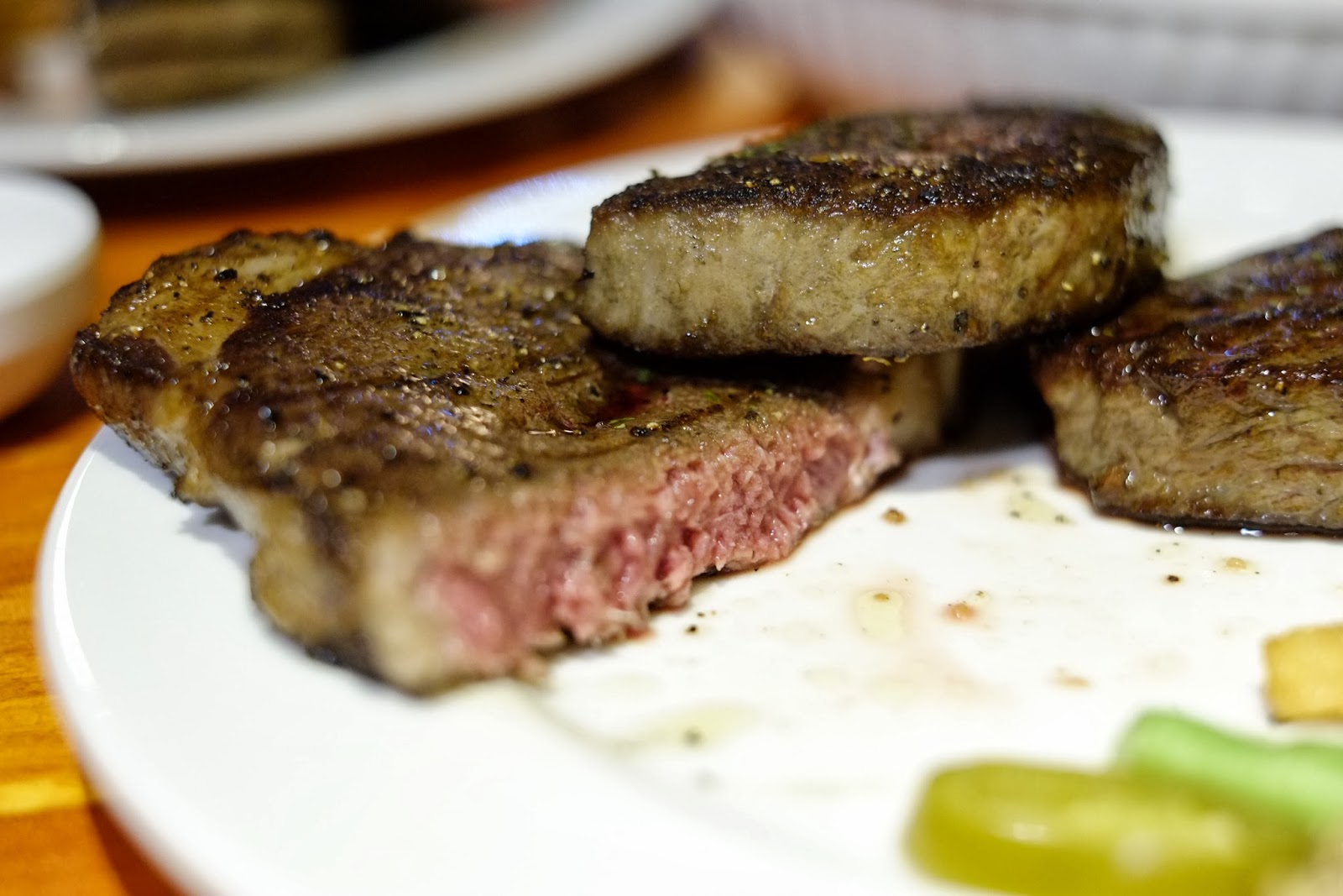 就點了安格斯認證肋眼、YOYO點了牛小排,她男友點了菲力,菲力來幾次都沒吃,終於快完成全品項制霸