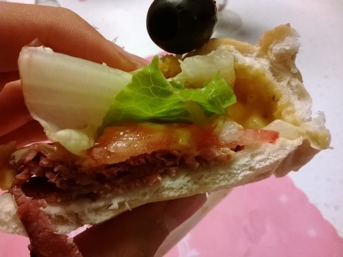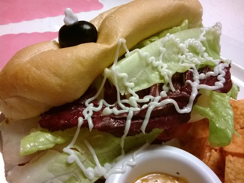 蒙特婁燻牛肉鮮蔬軟法堡佐起司$195