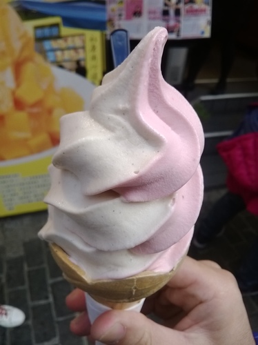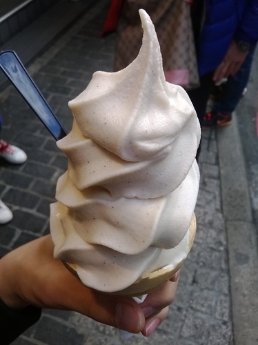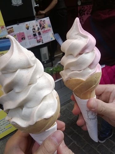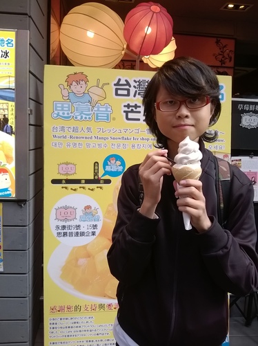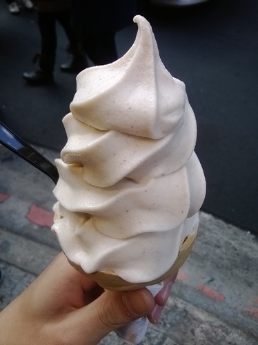 可能是當天傍晚(從下午排到傍晚><)氣溫偏低吧!霜淇淋不會很快溶化,至少我從永康街來回逛了一圈還沒吃完(拍謝!人家吃東西就是慢半拍