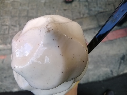 香草牛奶霜淇淋的口感比冷之果、白鬍子的霜淇淋還要水一些,且帶有重重的奶香,卻清爽不膩口