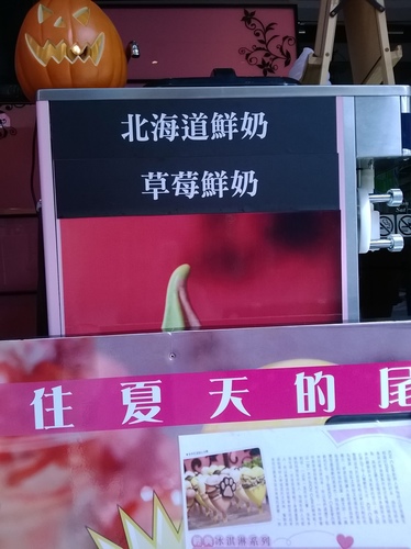 這裡的霜淇淋好像就三種:北海道鮮奶、綜合跟隨機的另一種口味,目前看過有宇治抹茶、草莓、海鹽焦糖……還有最新帝香草牛奶!