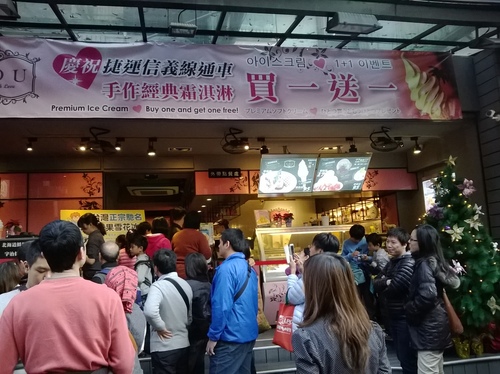 這回霜淇淋的買一送一更是人潮洶湧,正好這天又回溫,大家想吃冰,一看到這人潮根本