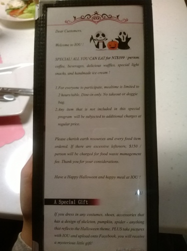 像是之前10.30、31的萬聖節,IOU也推出$399吃到飽的活動,打響名氣,當時我也參加囉~