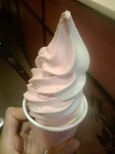 草莓鮮奶的部分,還是無法像冷之果那麼厲害,只能做成草莓鮮乳口味的霜淇淋