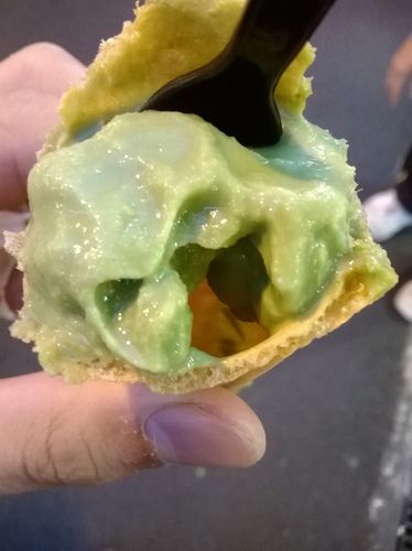 吃起來也是酥酥脆脆沒味道啦,而且底部是空的,如果像我一樣單純由上往下吃,最後會吃到很乾的空殼……