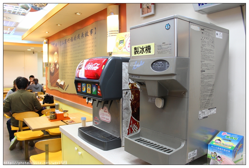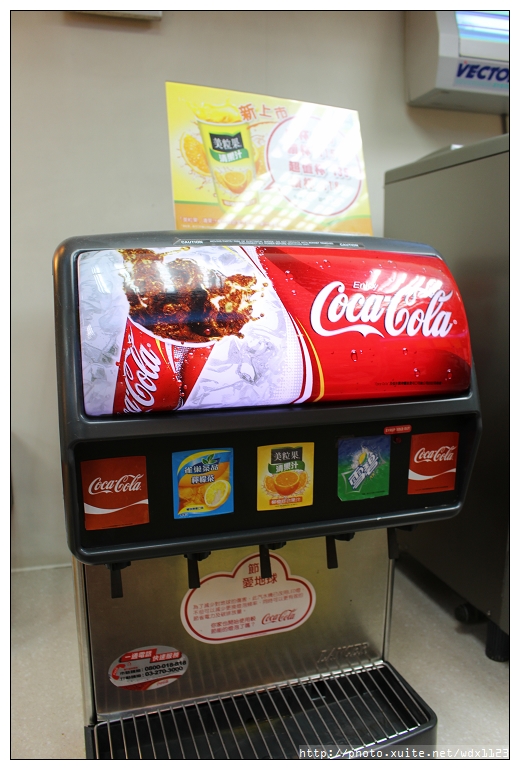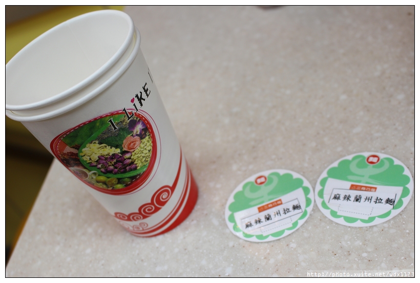 店員給我們2個中杯紙杯&兩個餐點名稱牌,然後自己盛裝飲料,第一杯免費,中杯續杯價15元,
