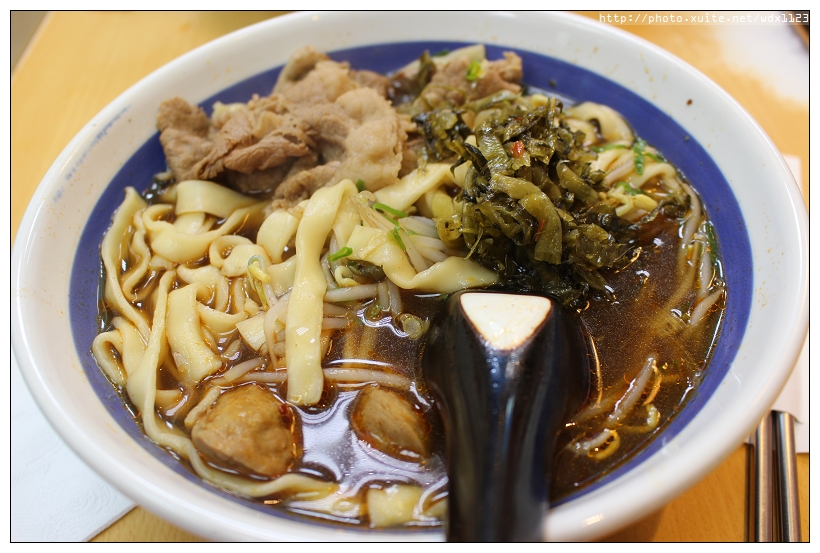 這是我第一次吃牛肉麵麵條吃拉麵,麵條好粗,吃起來Q彈有勁,口感很不錯;
