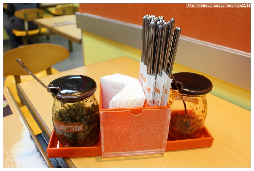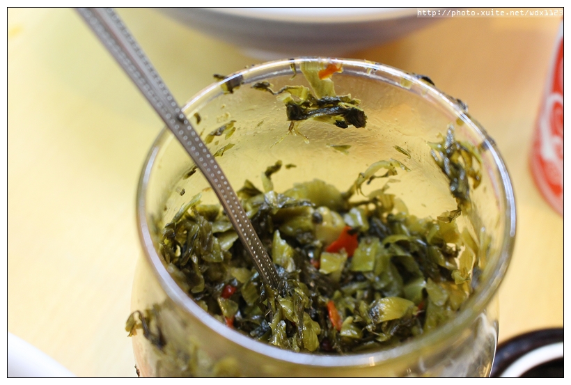 每張桌子上都有擺放酸菜、辣醬,吃牛肉麵一定要加上這一味兒「酸菜」。