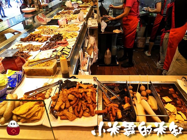 L形櫃檯上,擺滿了許多的炸物、滷味及關東煮