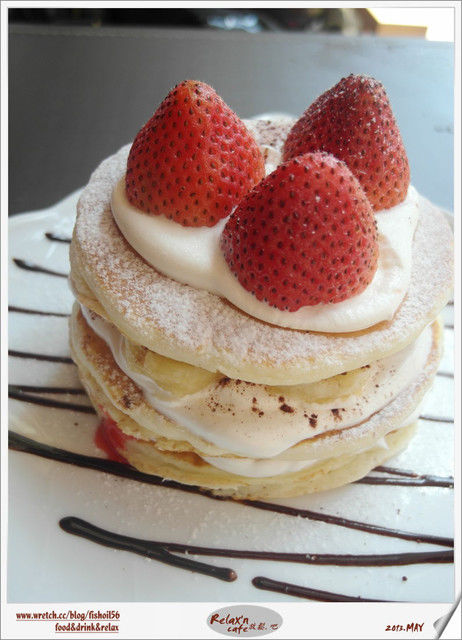 整口吃起來,奶油包圍住草莓的多汁、鬆餅的Q軟再配上香蕉的綿密,