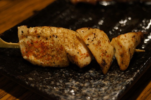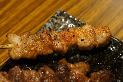 這道菜相當有特色,是雞軟骨和肉串著一起烤,