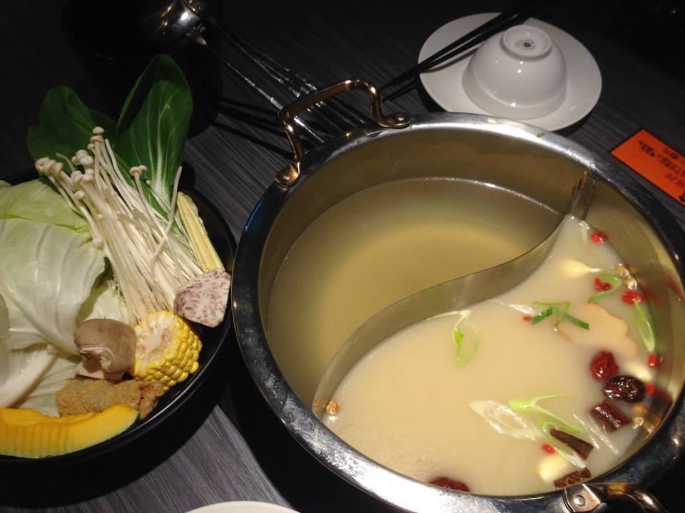 這次選擇不吃麻辣鍋(來麻辣鍋吃到飽不點麻辣我大概是第一人吧哈哈),點了養生與昆布的綜合鴛鴦湯底
