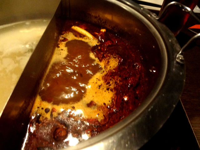 兩人一鍋可選不同口味就像是鴛鴦鍋的方式 中間會隔開